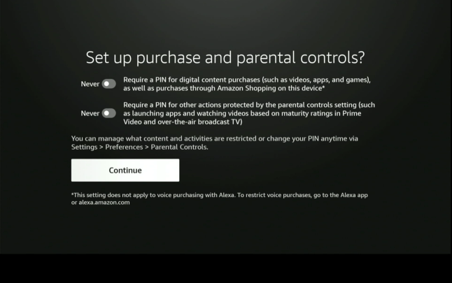 choose continue and press center button