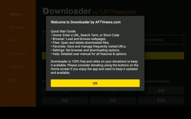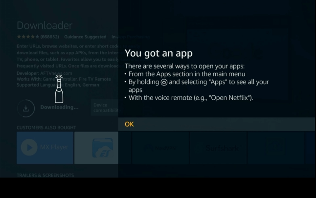 press downloader and turn on | press home